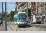 Line T4 operates from Bondy (RER E) to Aulnay-sous-Bois (RER B) over a former short SNCF branch line converted for tramway use. Short portions of the tram route runs on shared SNCF trackage at each end. The rolling stock is a fleet of 15 Siemens "Avanto" 100% low floor light rail vehicles, 37.5m in length with five articulated sections. The T4 service is operated by SNCF/Transilien (not RATP which operates Paris's other tramway lines). T4 opened on November 18, 2006.