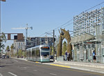 The general design of most stations is the same. Each includes what amounts to horizontal sails as canopies. There is also a group of vines in between mesh screens. The station artwork differs from station to station, and is designed by local artists and sculptors. Each station has electronic message boards. There is room for three-car trains at the stations, but at present, maximum train length is two cars.