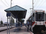 Service begins at Cleveland Avenue, a large park and ride station. Tracks and electrification continue east to allow for the storage of a two car train on each track. To turn trains around, the operator simply switches cabs here. A double crossover switch exists to the direct west of the station to allow access to both tracks for incoming trains.