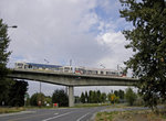 The first station is Parkrose/Sumner Transit Center at Sandy Blvd. This island platform station is connected to the bus transit center over I-205's northbound lanes by a unique "fish/bird" bridge. This structure is so named, as that from certain angles the bridge looks like a fish or a bird. Parkrose/Sumner was added to the Airport MAX line after the surrounding neighborhoods requested it. Also TriMet wisely shifted some bus services and built a park and ride lot here to relieve congestion at Gateway TC.