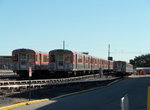 The stainless steel B-4 cars are 67' 6" long, 10' 1.5" wide, and 12' 3" high. Trains are marked via colored lights at the top corners of the lead car. Green denotes express, Yellow for Spur trains, Blue for special and white for local. Destination signs are shown via illuminated sections of the sign curtain which reads as follows: