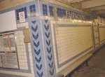 Next up is Susquehanna-Dauphin, another local stop with two wall platforms. Fare control is at platform level in the center. There are north (Susquehanna) and south (Dauphin) exits which have high wheels only. Outside the main northbound fare control is a mosaic entitled City Diary 1997. This patchwork quilt mosaic is very colorful. Tile color is yellow ochre with brown accents. The name is in white. The station floor is red brick and the fare control is separated from the paid area via a fence. This station opened September 1st, 1928.