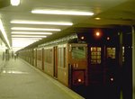Snyder station is next on the line, and sits in a cluster of local attractions. Methodist Hospital, and South Philadelphia High School are nearby, with shops along Snyder Avenue itself. This sat as the southern end of the Broad Street Line for 34 and a half years, with extensions to Pattison opening in 1973. The station's columns are colored maroon, and the mezzanine level walls are yellow with maroon accents. Floor tile on the platform is light gray with maroon accents, and the station signs are located in a long band of stainless steel that runs the length of the center of the ceiling over the platform, broken only where the staircases are located. Originally, the silver parts of the steel band were covered with orange plastic strips, and the station signs referred to the stop as "Snyder Ave."; this was changed when the rehab work was done (before that, the maps had dropped the "Ave." from the station name, this was done at least since 1984). Exits lead to all four corners of Broad Street and Snyder Avenue, with the northeast corner having an escalator. Above, passengers can board the former trackless trolley (electric trolleybus) route 79 on Snyder, and the 37 bus on the west side of Broad (it terminates at the station). An odd thing about this station is its alignment under Broad Street. If you look north of the station, there's an oddly placed crossover switch. Track 2 (southbound) through this station is track 1 (northbound) through the next station, and track 1 through Snyder station (as well as southbound track 2 from further north) merges into the same through track, as well as crossing over to the southbound track from the next stop. Southbound trains must travel at reduced speeds when entering, while northbound trains departing leave at normal speeds. Additionally, there is an odd jog in the tunnel, as if it was once intended for the tracks to bypass the station; this is the location for an intended but never built spur under Passyunk Avenue (to probably the same areas served by Route 37). Snyder station opened September 18, 1938.