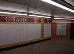 There are four exits from the platform, but only two are open for use. In an inverse of Spring Garden, the south exits and mezzanine here are closed (with the entrance at the SW corner of Broad & Girard being totally removed during remodeling of a former shopping plaza), and the north end remains open. Exit 3 leads to the turnstiles and booth, and a free crossover, while exit 4 leads simply to a high wheel exit. The exit to the NW corner of the intersection has a stone setting around the entrance, unlike the iron and steel framework around most entrances on the line. Surface transfers are available to Route 15, a trolley line that had been bustituted but now operates with revived "PCC-II" cars. Girard station opened September 1, 1928.
