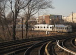 Leaving this station the line becomes an embankment. We arrive at a "B" stop, Millbourne, which needs renovation attention. The platform, side wall rails and the crossover are all of wood construction and appear rickety. The only modern touch is vapor lights and an AFC booth at the west end of the eastbound platform. To the north are almost overgrown and mostly removed railroad tracks to an unknown destination.