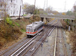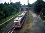 Route 100 begins at the 69th Street Terminal, where transfers can be made from a host of bus routes in addition to the SEPTA Market-Frankford Elevated and SEPTA Rt. 101/102: Media-Sharon Hill Line. It has a modern 3-track 4-platform terminal at the north side of the complex, adjacent to the El yards. Your typical tour begins on a single-car (two-car trains can be found in peak hours) Adtranz-built "train", one of the 26 delivered in 1994-96. Your run leaves the terminal through a maze of switches, crosses over the leads to the El yards and enters the Victory Avenue complex. A bus garage is on your right, with the Route 100 shops and yards on the left as you proceed from the terminal. A short "platform" exists here for train operators and crews to shuttle back and forth between the shops and the terminal. Some work equipment can usually be spotted in the small yard next to the shop building. When the Bullets and Liberty Liners roamed the line a short time ago, these could also be found resting in the yard. Now, many of these are enjoying retirement in traction museums.
