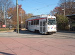Out of 37th, your car speeds through the tunnel until daylight can be seen ahead, at the 40th Street Portal. Once the portal is reached, Routes 11, 13 and 36 cars take the switch to the left, with Route 34 turning to the right. Before the portal area trackage was realigned in 1983 (to allow direct turnarounds in each direction, as well as sidings for storage), tracks came to a "T" configuration, then split, which limited turnbacks in both directions. Before the late 70's, 40th Street also crossed the tracks just outside the portal, which led to some traffic difficulties. There are three separate low platforms here, one each for Route 34 Outbound, Routes 11, 13, and 36 Outbound, and all lines inbound to City Hall.