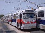 In that same year PTC came under NCL control. The ambitious plans for trackless expansion came to an end. No more lines would be converted. Not surprisingly, the tide began to turn against trackless operation as NCL converted the system to primarily bus over the course of three years. Some of the 200-series ACF-Brills were made surplus by reduced service in 1958 and were moved from Frankford and Southern to displace some of their older cousins, the 100-series, at Ridge. In 1959, the 61 began being served by buses on weekends and holidays. The 80 was temporarily bussed in 1960 because of sewer work. In early 1961, the 61 was formally converted to bus. The pre-war Brills were scrapped. The Pullmans, out of service since the mid-1950's, went as well. The ACF-Brills were moved back to Frankford and Southern. Things were looking glum. The only hope was that the post-war fleet, being relatively young and in good shape, would hang on until it could be fully depreciated.