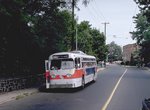 The late 1980's and 1990's saw the AMG's get a couple of new paint schemes. The first was a change from the red/blue scheme below the windows to a red/blue belt with black window treatment. Later, the black window treatment was changed back to white. In 1997 the current scheme of all white with a red/blue stripe above the windows began to be applied to the fleet. Also during this time the surplus coaches, not needed because the 66 extension was not realized, began to find new homes, with some turning up at the new Midvale bus garage and the adjacent Roberts Yard Regional Rail facility and others at the Frontier Depot in suburban Montgomery County. Several of these in storage were inoperable and would eventually be sold or scrapped.