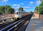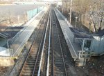 A nice station which has recently been renovated is next, Bay Terrace, an island platform located on an embankment. The exits at both ends are well maintained, especially the north exit, which has a glass awning and brick sides. Both Bay Terrace and Jefferson Ave. are notable in that they have historically served residential areas, not business districts, as the other stations do. North exit to Bay Terrace, south exit to Justin Ave.