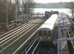 Stapleton is the next stop, an island platform also situated on a concrete viaduct. South of the station, yard tracks can be seen entering the line on the St. George-bound side. This is the connection to the Clifton shops, and where SIR's R44 cars are moved to and from the TA system (by truck).