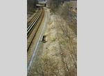 Clifton is next and is located partly on a bridge and partly on embankment. An interesting feature is the old waiting shelter on the St. George-bound side, which is in need of some TLC. The shelter had four windows, covered up on the southern side, the west side has evidence of windows existing in the past. The Tottenville side of the station formerly had an interlocking tower that controlled the link to the now defunct South Beach line. A close inspection of the Tottenville-bound platform reveals a stair to the trackway and former station exit, rendered useless due to platform extension in the early 1990's. Leaving this station, a look to the north will reveal the remnants of the South Beach cutoff, and a dismantled bridge. To the south, a spur on a pair of I-beams on concrete pillars is the location of an old coal, concrete, and lumber industry. The line varies from embankment to open cut with the terrain between here and the next station. Here, the line turns southward to Tottenville, no longer running along the harborfront.