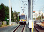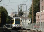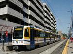 Sacramento CAF LRV #239 approaching Sacramento Valley Station. Photo by Peter Ehrlich, May 2008.