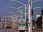 Friday, May 18th, 2001, was the official opening date of an extension from Baypointe eastward to Milpitas, a 1.9 mile section of a project known as the Tasman East Light Rail. A further extension to Alum Rock opened June 24, 2004, and the two segments together are known as the Tasman East-Capitol line. Current service patterns have trains from Alum Rock running east through Baypointe, turning south at Tasman to Downtown and then via Ohlone-Chynoweth to Santa Teresa.