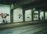 The station's otherwise drab and unremarkable surroundings are enlivened by a series of colorful wall murals. Created by young artists, similar murals and other artwork extend for the length of the Metro Busway. Known as the SODO Urban Art Corridor, this beautification project is the result of Seattle's "one percent for the arts" law, which mandates that all city public works projects earmark one percent of their budgets for art work.