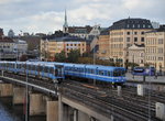 C20 "Vagn 2000" no. 2010 "Victoria" on the Tunnelbana Green Line crossing the Soderstromsbron (bridge). Photo by David Pirmann, October 2010.