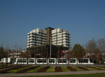Strasbourg's original tramway system ceased operations on May 1, 1960. Starting in the late 1980s, the city and the region began to develop a new tramway network, becoming one of the first in Europe to adopt 100% low-floor trams exclusively. To that end, it introduced ABB Traction's Eurotram, and service began with today's Line A from Hautepierre Maillon to Baggersee, 9.8 kilometers in length, with 26 double-end, 8-axle cars in October 1994. Fourteen more 8-axle trams and 17 10-axle Eurotrams, now built by AdTranz, were added between 1998 and 2000, when the system reached its current size, first with the extension of Line A to Illkirch Lixenbuhl, and following with startup of east-west lines B and C on Sept. 4, 2000. Currently Line D is a supplemental short-turn service for Line A, but there are plans to extend it eastward from its south terminal. Lines A and D, oriented basically north-south, cross routes B and C at Place L'Homme de Fer in Strasbourg's center, and there is a pair of connecting curves in the northwest quadrant of the piazza. Some streets in downtown are the exclusive province of trams and pedestrians. Private right-of-way is the rule in outlying areas. The old tram system's 1930s-era Cronenbourg carbarn, near Rotonde Station, was rebuilt to serve Line A. There is also a new carbarn located at Elsau at the end of lines B & C.