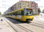 The former tram line 2 was converted to Stadtbahn operation in two parts. The first section Hauptfriedhof -- Berliner Platz started on June 22, 2002. At that time the whole tram line was closed. Until the opening of the other part (Berliner Platz to Hölderlinplatz) on December 14, 2002 the light rail vehicles used the city-loop (Staatsgalerie -- Charlottenplatz -- Berliner Platz -- Hauptbahnhof -- Staatsgalerie) to reverse.