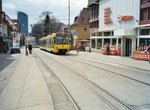 The Stadtbahn line U6 was changed from metre-gauge tram into standard-gauge light-rail service at the section Möhringen Bahnhof to Feuerbach Pfostenwäldle on November 3, 1990, together with line U5 Leinfelden - Freiberg. Light-rail operation from Pfostenwäldle to Giebel started on September 26, 1992, after building a tunnel through the suburb Weilimdorf. The further extension to Gerlingen Siedlung opened on October 2, 1993. The tunnel in Gerlingen was finished on May 31st 1997. Two-train operation on the line U6 started on September 9, 1996. At the rush-hour the U6 starts at Vaihingen Bahnhof and during the rest of the day at Möhringen Bahnhof. The section Vaihingen Bahnhof - Möhringen Bahnhof can be seen at the Line U3, the further section to Pragsattel is described on Line U5.