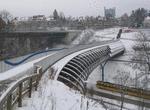 A big railway viaduct crosses the valley at Vaihingen Viadukt station. There is also a large double-deck bridge for cars, pedestrians and bicycles. The cars use the lower level of the bridge. In this section the tracks are on a reservation at the west side of the Kaltentaler Abfahrt. From Engelboldstraße station the tracks are again on a central reservation.