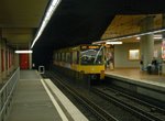 Just before arriving at Hauptbahnhof (Arnulf-Klett-Platz) station, the trains enter a sharp curve. This station has four tracks and three platforms. The two tracks in the south are used by the lines U5, U6, U7 and tram line 15, the others at the north side by the lines U9 and U14. Connetions to all S-Bahn lines in level -3, one level deeper. Open designed entrances on both sides lead from the upper shoping level ot the platforms. After leaving this station the tracks curve right and cross under the U4 / U14 tracks. There is no track connection between the different tunnels. The tunnels opened on Apil, 9th / 10th 1976.