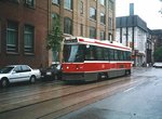 July 23, 2000 was the first day of revenue service on the new 509-Harbourfront line. The 509 starts at Union Station, runs south through the Bay Street tunnel to Queens Quay, and west along Queens Quay to Bathurst. It jogs up Bathurst to Fleet and along Fleet to the Exhibition. The part from Union Station to Queens Quay and Spadina is shared with the 510-Spadina route and the part between Fleet and Bathurst and the Exhibition is shared with 511-Bathurst. Only half a mile of connecting track is new to the streetcar network. This allows a direct ride, almost exclusively along private right of way, from Union Station to the Exhibition.