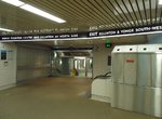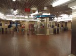 Osgoode, located at University Avenue & Queen Street West, is named for Osgoode Hall (on the northeast corner), a National Historic Site and the former home of the most historic and prestigious law school in Upper Canada. There is one mezzanine, positioned over the platform, somewhat toward the south end. Two fare control lines are positioned to the north and south of a central unpaid zone; the north fare control line is staffed, and is fully accessible with elevator access in the paid zone; the south fare control does not have its own booth, but consists of half-height turnstiles because it is within sight of the booth on the north line.