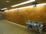 Amid the shambolic state of its other projects, St Andrew has also been used as a testing ground for new station finishes. The south end of the station has seen its soft yellow tinted fluorescent lights replaced with bluish models which, compounded with the blue wall tiles on the platform, gives the station's atmosphere an unusually crisp edge compared to the softer glow of other stops. Curiously, a section of wall at the far south end of the southbound platform has been given an experimental new wall treatment; for whatever reason this has not carried over to the rest of the station, and has started to show its own age.