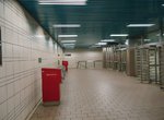 4 separate fare controls lead to one large mezzanine; one is a staffed line of low turnstiles at the south end, one is an unstaffed line of full-height revolving turnstiles at the far north end, and the other two are single wheelchair accessible gates surrounding elevators to each platform. The fare-paid zones by the elevators are not connected, meaning that there is no paid crossover between platforms for customers requiring an elevator.