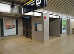 - A direct underground connection to the retail levels of Empress Walk, on the east side of Yonge Street; this exit features a rather awkward bank of 3 doors (pictured), interrupted by a column protruding into an already cramped vestibule area
