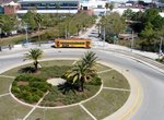 The southern end of the line is anchored by Southern Transportation Plaza. This area as of opening day was still under construction and not in use. From here two tracks embedded in concrete on a private right of way along Ice Palace Drive head east to the next stop, Household Finance Corporation, formerly Morgan Street, right next to the St. Pete Times Forum.