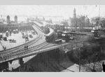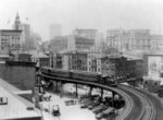 While the reporter was examining the cars with a critical eye the train was already far on its way through the narrow down-town streets. Through Pearl street it ran, making a deafening clatter with the rattle of the road itself, the grinding of the wheels and the reverberations from the buildings. People in the street below, however, seemed to pay no attention to the engine and cars and the horses stood quietly in front of their trucks and carts, without drivers near, and munched their fodder. In Third avenue the horses of the surface cars and of wagons jogged along, people looked into shop windows and not to the sky, and the only difference was the train, having more room on each side, did not make so much noise.