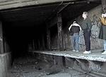 Back to the Tunnel. Many of us walked back through the "westbound" trackway - no automobiles blocking the way, but we had to cross back over to the "eastbound" side on the Sedgwick Ave. end through one of the crossover holes spaced at intervals throughout the tunnel in order to get back out. A painted sign indicating the location of Woodycrest Avenue was found in the westbound tunnel. We didn't see any emergency exits in the tunnel at all (but there were "ladders" leading up to the catwalk every 10 feet, something that we felt was unusual).