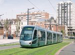The Transvilles rolling stock consists of 21 Citadis trams from Alstom, with the last one being delivered February 24, 2006. The trams have five articulated sections for a total length of 33m (capacity 295 people, 48 seated).