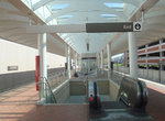 Crystal City. This station's main entrance sits in front of an office building on the north side of 18th Street South, near South Clark Street. (1755 Crystal Square South, to be exact). It sets back from the street and would be hard to spot if not for the pylon at curbside announcing it. The station is located under 18th Street South (extended) between South Clark Place and Jefferson Davis Highway (US Route 1) Large hotels are near here, including representatives of the major national chains. Business travelers, office workers, tourists and shoppers use this station, and it can get very crowded at any time of the day or evening. There are two shopping centers located just below street level, with direct station access - the Crystal Underground, with its eclectic shops and eateries, and the Crystal Plaza, with tonier stores. A tunnel also leads from the Crystal Underground directly to the Marriott Crystal Gateway, an enormous hotel. Since the airport is just one stop away, this place is popular with visitors. There are two side platforms, with pylons, and waffle architecture. The entrance pod is in the station's center, and the escalators are shorter than most. Crystal City station opened July 1, 1977.