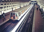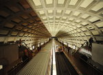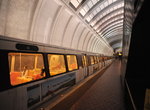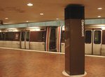 Metro Center station is by far the busiest in the system, with fast-moving crowds milling about in the rush hour. Watch your step and stay alert here - this is not for the squeamish or slow of foot. There are plenty of escalators in operation between the two levels, but those who stop to gaze at this massive station's beauty can be swept along by the herd of commuters. Best views are from the upper level, just outside of the Red line platforms. This station is a 'must-see' sight, not only for train and subway buffs, but for ordinary tourists as well. Metro Center station upper level opened March 27, 1976.